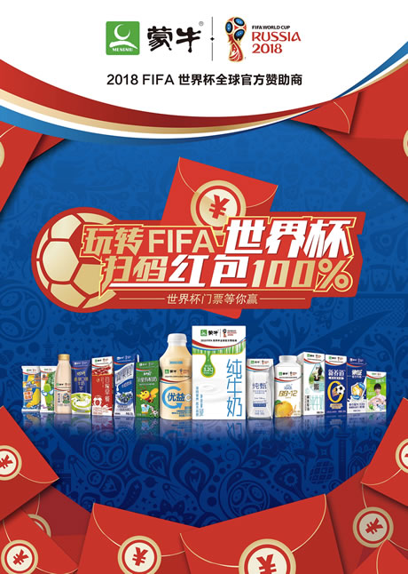 从今年3月15日开始,当你买了印有#玩转FIFA世界杯 扫码红包100%#标志的蒙牛系列产品后,扫描产品上方二维码,便能够进入蒙牛FIFA世界杯小程序,100%领取高至666.66元现金红包,引发用户广泛参与。