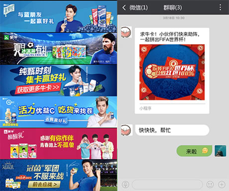 此次促销活动以小程序为中心媒介,连接微信红包卡券、微信运动、微信社交分享,为消费者提供丰富流畅的用户体验,一方面加深蒙牛品牌与世界杯的强关联,一方面帮助品牌快速完成销售转化、用户引流。