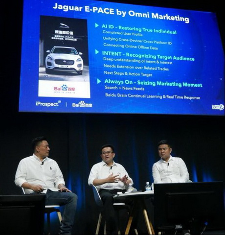 在6月20日戛纳中国日论坛上,百度副总裁、百度搜索公司CTO郑子斌、捷豹路虎中国市场执行副总裁胡波以及安布思沛(中国)CEO、电通安吉斯集团中国区首席创新官陈建豪,围绕人工智能落地应用,从商业、出行和沟通等三个场景,分享了人工智能如何赋能品牌营销及改变人类生活。百度重磅推出了Omni Marketing全意识整合营销数字平台,并与安布思沛、捷豹路虎联合带来了全意识营销的经典案例,成为戛纳创意节中国日的关注焦点。