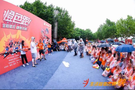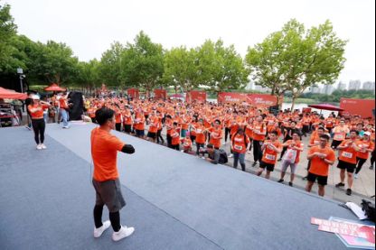 6月23日,上海阴雨,不过这丝毫不影响现场跑者的激情,开跑前由专业的健身教练带领大家做跑前热身,跑前来一节甩手甩脚甩掉疼痛的健身操,带你放松肌肉,燃动全身。活动现场,500多同样穿着T恤的米粉荟聚成一片橙色的海洋,大家热情高涨。