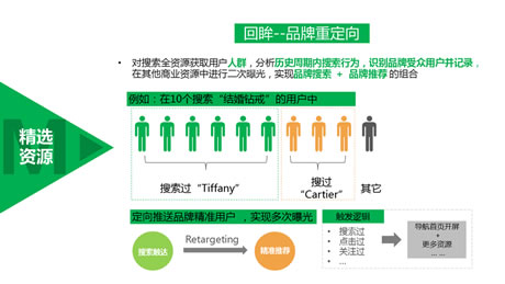 张旻翚以“回眸”为例向与会嘉宾介绍了360在AI赋能下的融屏营销能力。在用户的“融屏行为”中,消费决策的链路由诸多设备和环节共同构成,是碎片化、非连续的,传递给用户的营销信息非常容易出现“断链”现象。针对这个痛点,“回眸”通过重定向营销有效接续品牌对用户的影响,达成商业产品在信息传递的“融屏共通”。比如当用户在360搜索过“婚戒”关键词之后,用户再次打开360导航时将以最高优先级激活Tiffany或Cartier等匹配需求的广告推荐。“回眸”通过对用户跨屏行为分析触发不同场景的资源,实际上也实现了内部流量和外部流量的“融屏共通”。这样的“融屏产品”正是最契合当下用户行为习惯的营销产品,可以有效提升客户的推广效果。