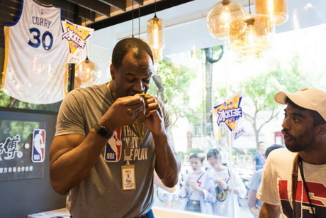 中国的传统饮食文化一直以来都令NBA球星们颇有兴趣,此次在端午节前夕来到上海的大卫·罗宾逊也不例外,在现场品尝了民族传统节庆食物粽子,以及汤包、生煎等上海当地的特色小吃。