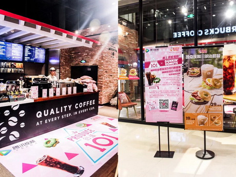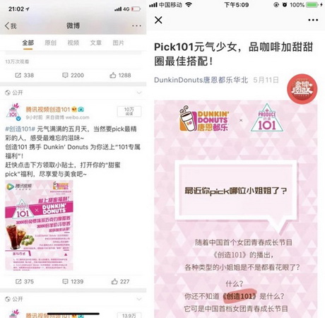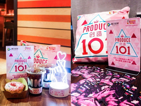 整个活动期间,智美互动与Dunkin’ Donuts也展开了深度合作。Dunkin’ Donuts不仅让《创造101》的元素在其北京十多家线下店铺露出,而且还通过对其悠唐广场的主题店包店3周的方式,为《创造101》节目进行宣传和推广。让人不解的是,智美互动为何会瞄准Dunkin’ Donuts这个小众的国际连锁品牌?