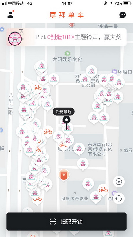 扫了一辆摩拜,车锁打开的音乐竟然是《创造101》的主题曲…这是什么操作?是要让我pick一辆自行车吗?这车难道要C位出道?