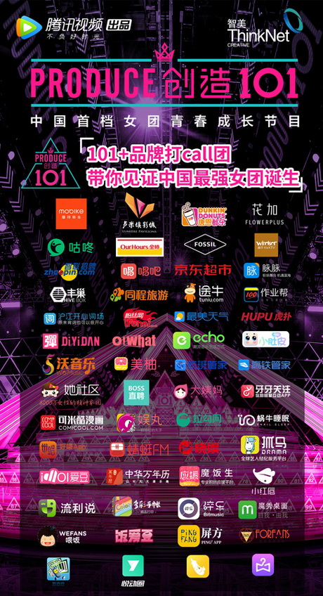 和以往跨界营销仅限于开屏广告的单一方式不同,从节目开播之初,到节目收官之尾,《创造101》实现了一次全方位、多角度、深层次的霸屏,是真正地在引领行业创新。