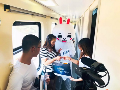 伴着列车的汽笛声,“荣星号”驶向了荣星电器的品牌新地。辐轮传媒副总裁陈晓东先生及工作人员与荣星电器销售经理王勇先生共同登上“荣星号”,发放礼品,H5游戏抽奖互动派送荣星电器电子购物券、独家定制文化衫、围裙和棒球帽,回馈广大消费者,场面十分热烈,乘客们积极参与,拉近了荣星与消费者的距离,快速提高了品牌曝光度,加深品牌印象,把荣星电器“吸尽油烟,不占空间”的品牌理念传播到消费者中去,扩大品牌影响力,直击目标受众。