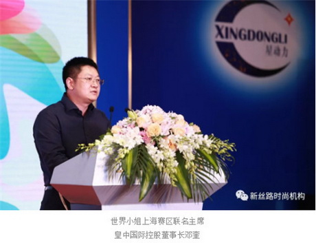 在第68届世界小姐上海赛区启动仪式上,世界小姐上海赛区联名主席、皇中国际控股董事长邓奎,67届中国小姐冠军关思宇分别致辞。