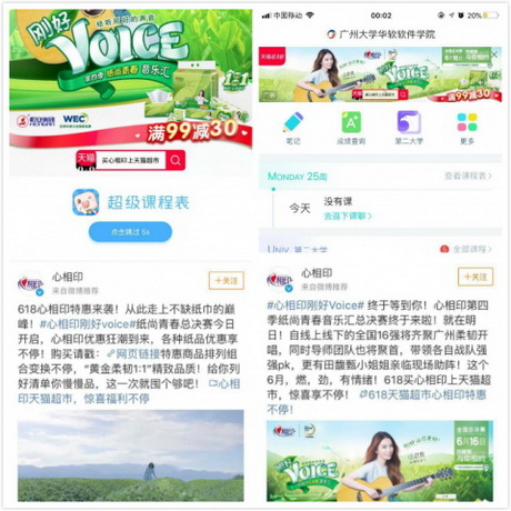 本着对活动的受众与群体有着深刻的洞察,心相印在精准投放方面的选取同样具有代表性。针对主要面向年轻市场的产品和活动,心相印特地选取了“超级课程表”,一款年轻人和学生群体之中具有相当高知名度的APP,进行精准投放。凭借开机屏外加首页置顶Banner,仅用4天时间,已成功获得极大的曝光量与超高的点击数。另一方面,粉丝通的宣传也紧锣密鼓,考虑潜在的覆盖面与辐射面转化,心相印集中火力将覆盖区域定在其受众群体与潜在用户,进一步做全渠道的推广。