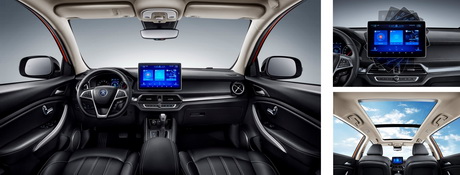 全新一代宋的内饰设计讲究对称美学和流线美学,打造简洁实用、分区合理的布局,搭配包裹性极强的人体工程学运动座椅,营造出氛围感极强的星际环抱式智能座舱。人体可接触的部分均使用了触感舒适的软性材质进行包裹,加上采光和视野都更好的全尺寸巨幕天窗,充分考虑了用户的舒适体验。
