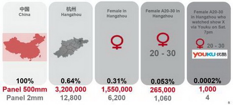 尼尔森联合腾讯、微博共同来做这件事,与腾讯合作进行建模提供性别和年龄标签,与微博合作建模提供家庭收入、是否有车、是否有小孩三个标签,从而对用户进行画像。由此来判断看到广告的这些人和我希望的目标客户有多大分别。
