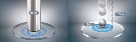 与普通镜片分子线性结构相比,KR超韧材料分子为网状交联结构,该材料获得了国家专利认证,抗冲击性是国家标准的5.6倍,抗冲击性更强,镜片不易碎,更安全。90g钢珠1.27米落下,超韧镜片不裂不碎,在199KG压力下,实验镜片仅发生反转,不碎裂,在耐冲击性能上更有优势,能为眼睛提供坚强保护。