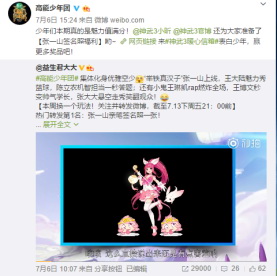 除此之外,神武3作为《高能少年团》互动支持伙伴,微博也是宣传的一大战场,每期节目播出,持续发布稿件,捆绑节目内容与神武3品牌。借助节目IP,公关占位,引导更多的节目粉丝关注到神武3,参与到为少年们打call留言的互动中来。