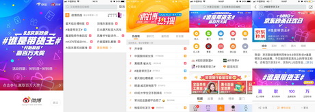 作为本次营销活动的平台方,微博整合平台优势,给予比赛强大的资源支撑。品牌主话题#谁是带货王#登上微博热搜榜,宣告“网红圈101”的火热竞争正式上线,开机报头、发现页banner、话题热搜榜等多种黄金资源全面覆盖用户浏览路径,引发用户关注并参与赛事,助推赛事热度不断发酵,为”9.9京东秒杀《谁是带货王》”挑战赛的社交分发和口碑传播提供了保障。
