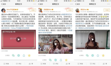 赛事传播期间,作为赛事唯一品牌方京东,借助微博资源及红人内容,全量推广9月9日京东秒杀狂欢日,聚焦全网关注,而参与赛事的网红、粉丝、消费者以及传播内容都将沉淀为品牌资产,释放品牌营销影响力。此外,京东也借此契机布局网红生态,抢滩网红经济,进一步打造社交电商的共赢新生态。