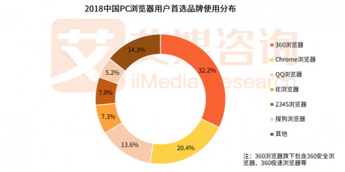 艾媒数据显示,PC浏览器市场趋于饱和,头部企业竞争激烈,其中,360浏览器以32.2%的市场份额占据行业第一位置。