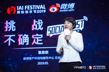 5月8日,微博客户市场和服务中心总经理张欣欣女士受邀出席2019年IAI国际创享节并带来“挑战不确定 Social First”主题演讲,从社交媒体的角度,分享各大品牌在社交媒体上创新的玩法和实践。