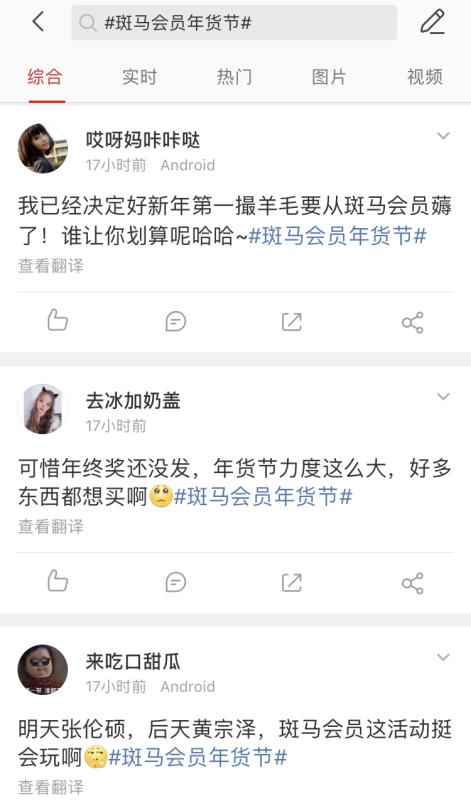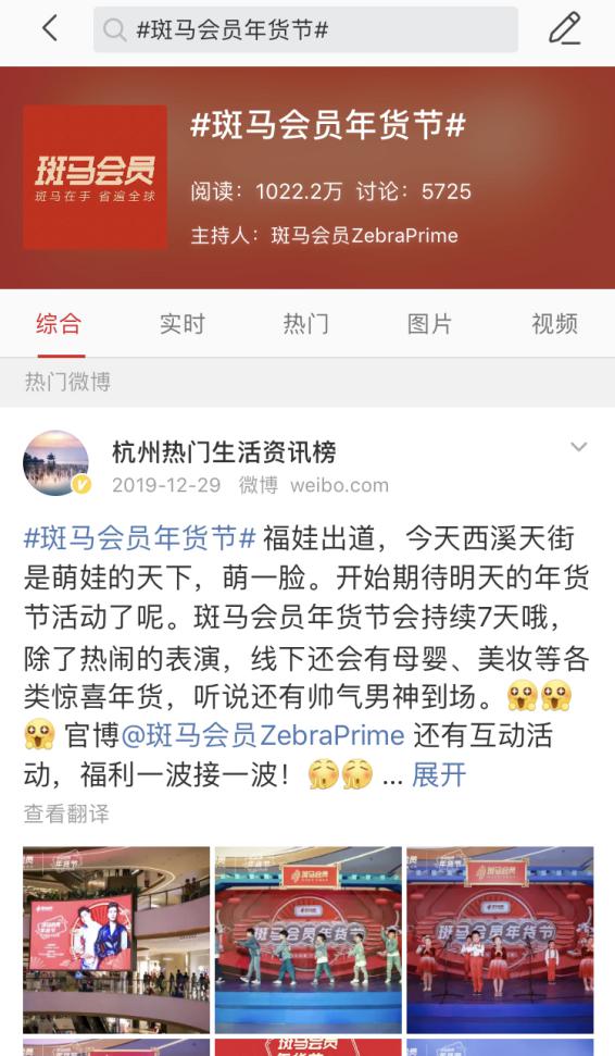 为引起用户过年的共鸣和代入感,斑马会员利用新媒体平台微博,制造互动话题“斑马会员年货节”,全城造势。