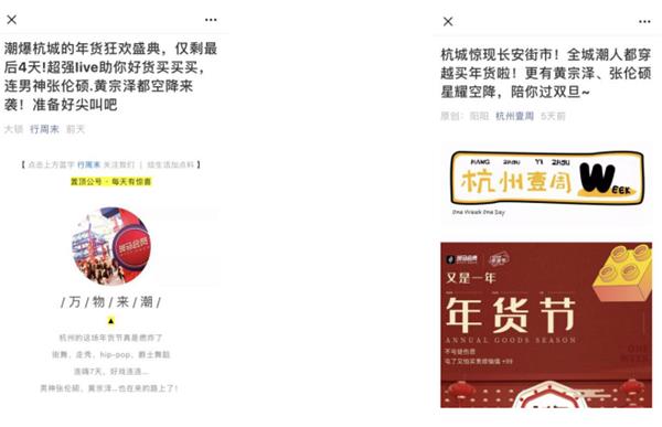 此外,在这波话题的持续升温中,杭城几大公众号如“行周末”“杭州壹周”“杭州潮玩”“走遍杭州”“触摸杭城”“东八区杭州”等也大力为斑马会员年货节进行推广,再次掀起一波全民狂欢。
