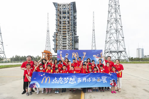 11月24日,嫦娥五号发射成功,标志着麦当劳全程策划执行的这场“月球画展”正式拉开序幕。海南文昌航天发射场,获奖小作者全程参与了发射,并且见证了这场月球画展成真。相信,这次见证,会在这群孩子的心里留下很多美好的回忆,但孩子们的航天梦无疑随着嫦娥五号的发射被点亮了。而这场发射,让“点亮梦想”和“嫦娥五号”并肩出现在了公众的视野里,让月球画展成为了这场国家顶流事件里的一个动人的组成部分。