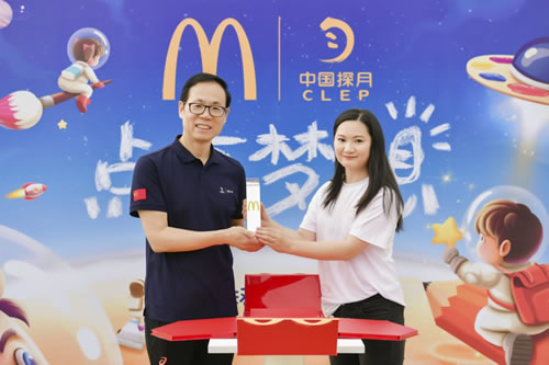 (右一麦当劳家庭业务负责人孙静女士、左一中国嫦娥奔月航天科技有限公司总经理许兴利先生)