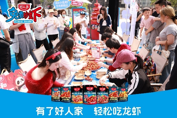 2026年4月18-19日,复合调味料品牌好人家于武汉光谷举办了以“有了好人家轻松吃龙虾”为主题的免费炒虾活动。活动现场,国民演员王迅空降、青春男大炒虾宠粉、巨型龙虾塔免费试吃等为现场集聚了超高人气,吸引了众多市民争相围观打卡。好人家免费炒虾活动意在让消费者更轻松省心的吃龙虾:消费者无论在何地购买的小龙虾,都可以在选购好人家小龙虾调料后享受免费洗虾、炸虾、炒虾、打包等一站式服务,以极高的性价比体验龙虾美味。
